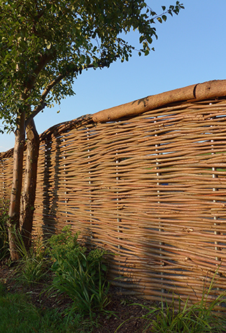 Geflochtene Zäune und Hütten mit individueller Gestaltungsmöglichkeit Da es eine Vielzahl von Flechtarten gibt, haben wir, um Ihnen eine bessere Vorstellung zu geben, einige Musterzäune und Sichtschutzelemente bei unserer Werkstatt aufgestellt.